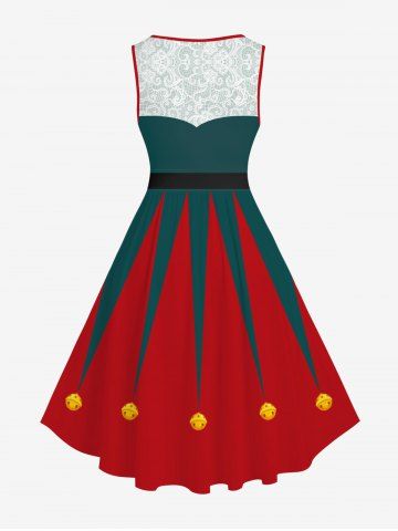 Dresses > Plus Size Christmas Elf Bells Bowknot Print 1950s Vintage Dress