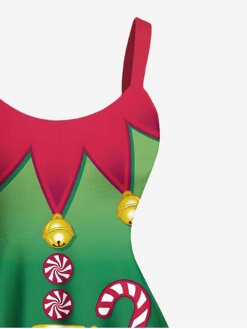 Plus Size Christmas Elf Candy Print A Line Dress - Green - 1x