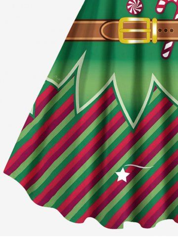 Plus Size Christmas Elf Candy Print A Line Dress - Green - 5x