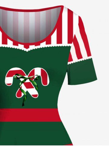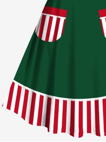 Plus Size Christmas Elf Candy Stripes Print Vintage Dress - Green - S