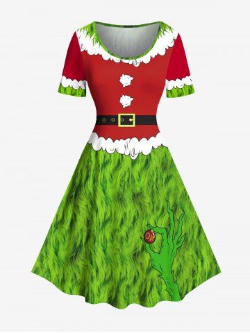 Plus Size Christmas Elf Claws Santa Claus Costume Print Vintage Dress - Green - 5x