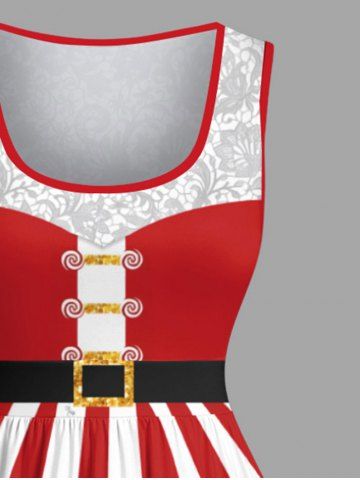 Plus Size Christmas Elf Costume Floral Print 1950s Vintage Dress - Red - Xs