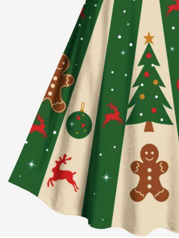 Dresses > Plus Size Christmas Elf Tree Gingerbread Snowflake Elk Print Vintage Dress