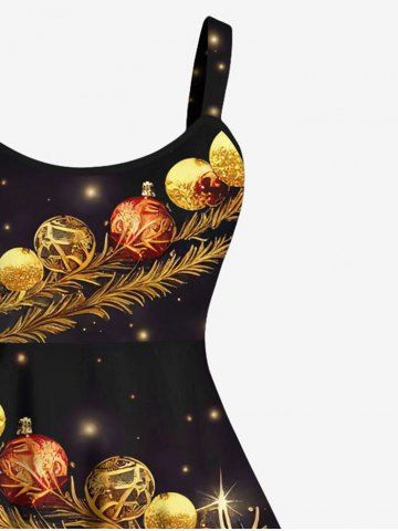Plus Size Christmas Elk Ball Snowflake Star Glitter 3D Print Tank Dress - Deep Coffee - 2x