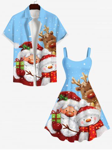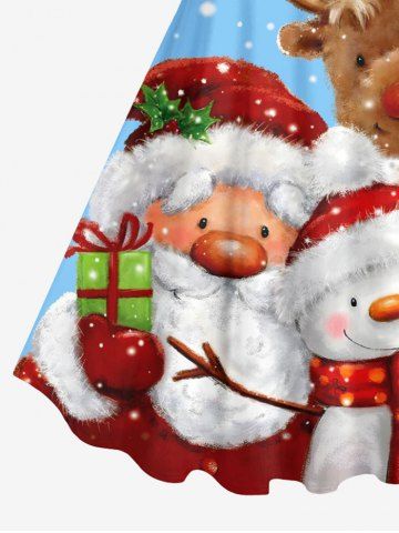 Plus Size Christmas Elk Santa Claus Gift Snowflake Print A Line Tank Dress - Blue - S