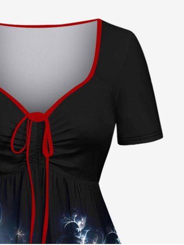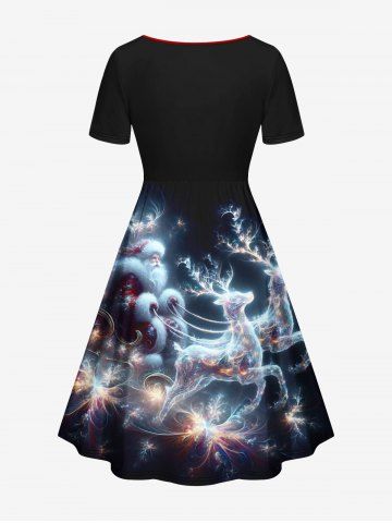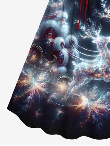 Plus Size Christmas Elk Santa Claus Glitter Galaxy Print Cinched Dress - Black - 5x