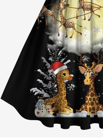 Plus Size Christmas Elk Santa Claus Snowflake Moon Giraffe Plaid Print Vintage Swing A Line Dress - Black - Xs