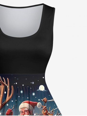 Plus Size Christmas Elk Santa Claus Tree Forest Snowflake Print Ombre Vintage Swing A Line Dress - Black - Xs