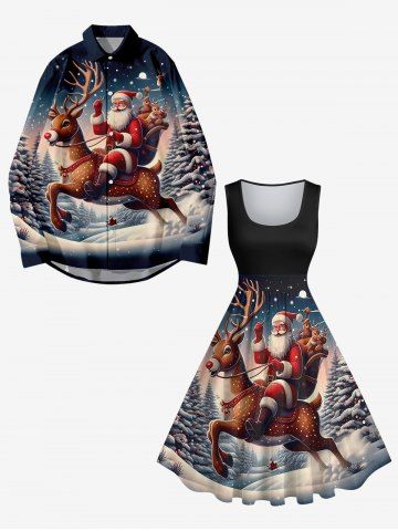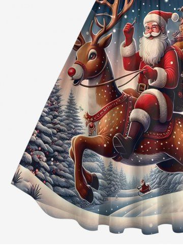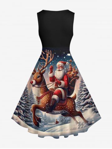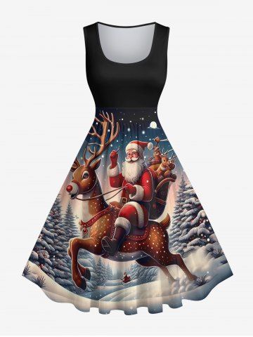 Plus Size Christmas Elk Santa Claus Tree Forest Snowflake Print Ombre Vintage Swing A Line Dress - Black - 5x
