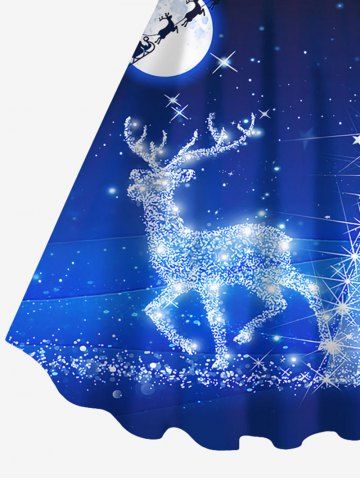 Plus Size Christmas Elk Sled Galaxy Moon Sequin Glitter 3D Print Tank Dress - Deep Blue - Xs