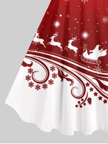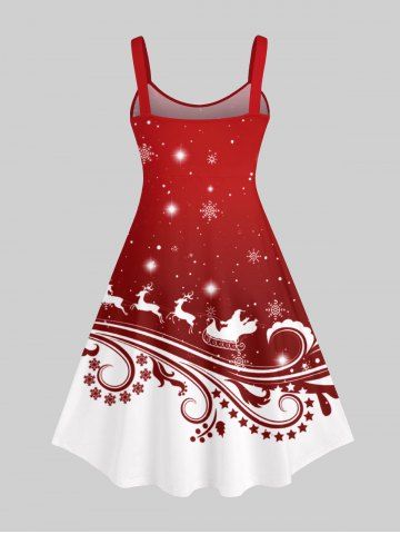 Plus Size Christmas Elk Sled Santa Claus Snowflake Colorblock Print Tank Dress - Red - L