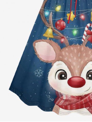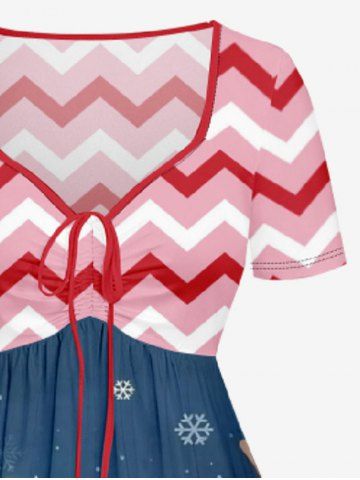 Plus Size Christmas Elk Snowflake Ball Galaxy Zig Zag Print Cinched A Line Dress - Navy Blue - L
