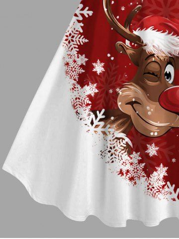 Plus Size Christmas Elk Snowflake Colorblock Print Tank Dress - Red - S