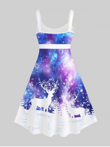 Dresses > Plus Size Christmas Elk Snowflake Print Tie Dye Sleeveless Dress
