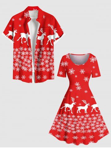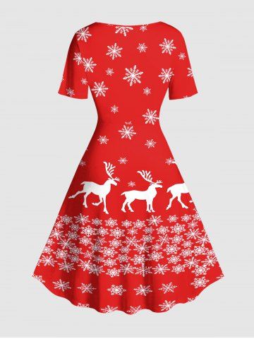 Plus Size Christmas Elk Snowflake Print Vintage Dress - Red - Xs