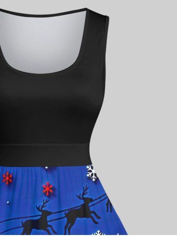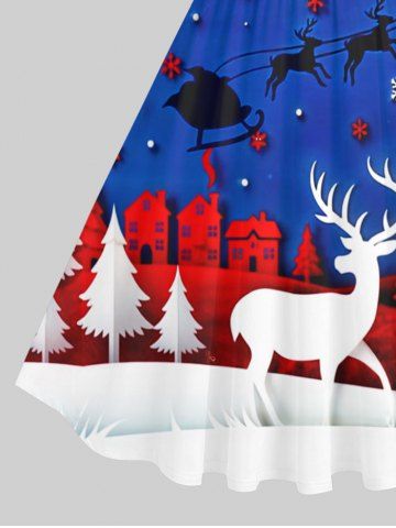 Plus Size Christmas Elk Snowflake Santa Claus House Print Vintage Swing A Line Dress - Multi-d - L