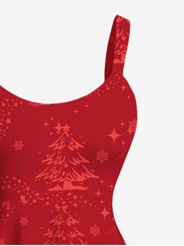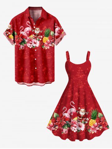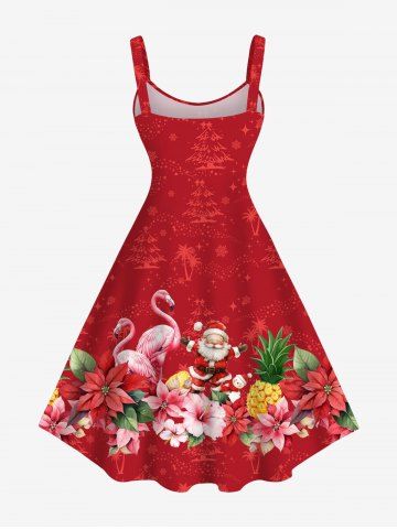 Plus Size Christmas Flamingo Santa Claus Pineapple Flowers Print Tank Dress - Cherry Red - 1x