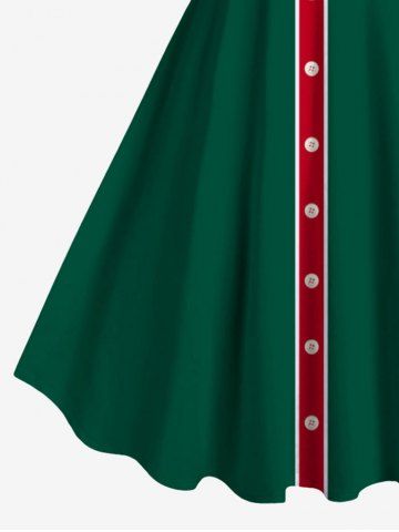 Plus Size Christmas Flower Leaf Holly Print A Line Dress - Deep Green - 3x