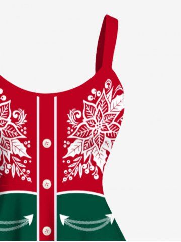 Plus Size Christmas Flower Leaf Holly Print A Line Dress - Deep Green - 4x