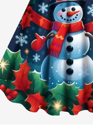 Plus Size Christmas Fruit Leaf Snowman Snowflake Print Tank Dress - Green - 3x