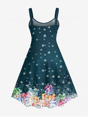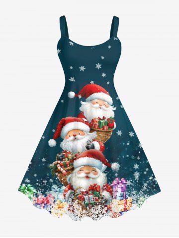 Plus Size Christmas Gift Santa Claus Snowflake Print A Line Tank Dress - Green - 1x