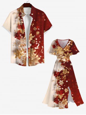 Dresses > Plus Size Christmas Gilding Floral Print Ombre Split Pocket A Line Midi Dress
