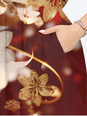 Plus Size Christmas Gilding Floral Print Ombre Split Pocket A Line Midi Dress - Multi-a - M