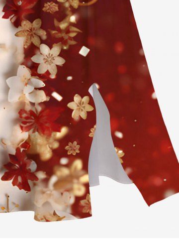 Plus Size Christmas Gilding Floral Print Ombre Split Pocket A Line Midi Dress - Multi-a - L