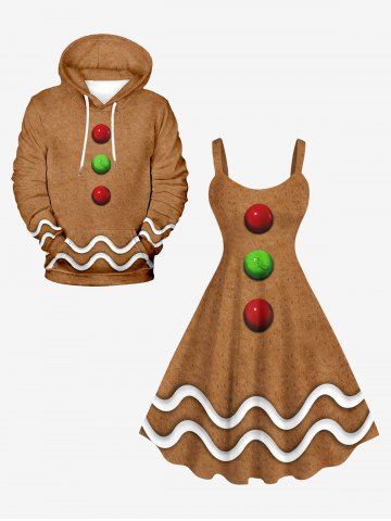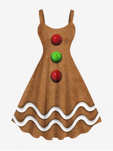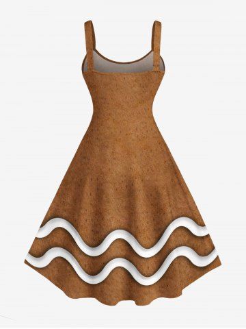 Plus Size Christmas Gingerbread Ball Wavy Line Print Tank Dress - Coffee - 3x
