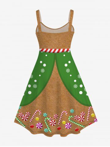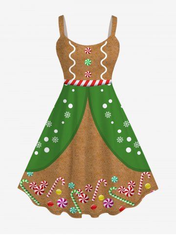 m*****e5Plus Size Christmas Gingerbread Snowflake Candy Ribbon Bowknot 3D Print Tank DressColor: COFFEE Size: 3XAbsolutely love the unique pattern on this dress! Loved creating a gingerbread themed outfit to go with it. Strecthy and roomy material.