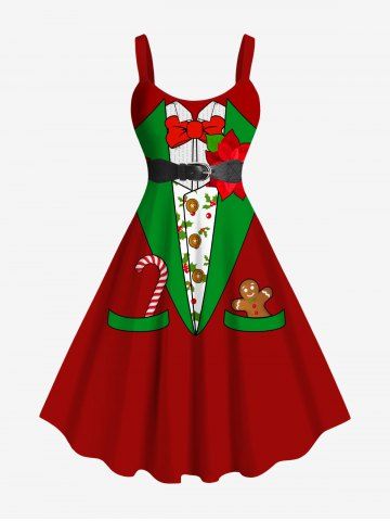 Plus Size Christmas Gingerbread Candy Floral Suit Pattern Print Ugly Funny A Line Tank Dress - Red - L
