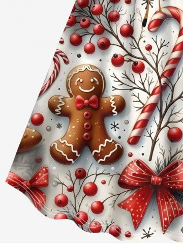 Dresses > Plus Size Christmas Gingerbread Candy Holly Fruit Bowknot Snowflake Print Cinched Dress