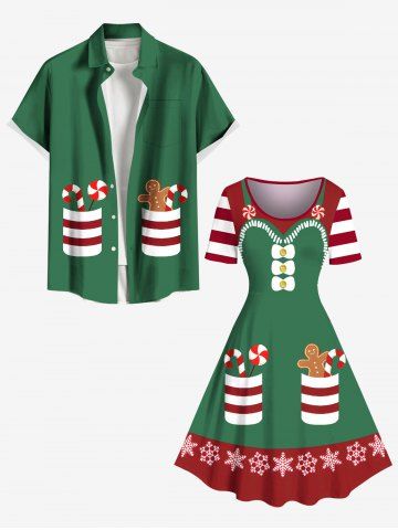 Plus Size Christmas Gingerbread Candy Pockets Print Vintage Dress - Green - 4x