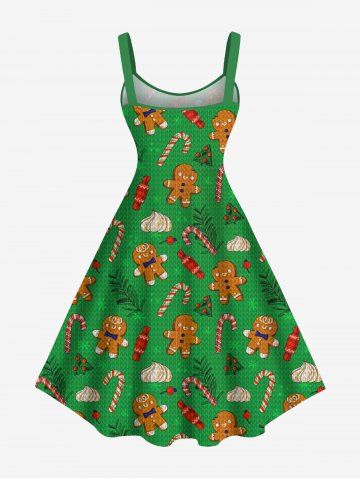 Plus Size Christmas Gingerbread Candy Print Tank Dress - Green - Xs