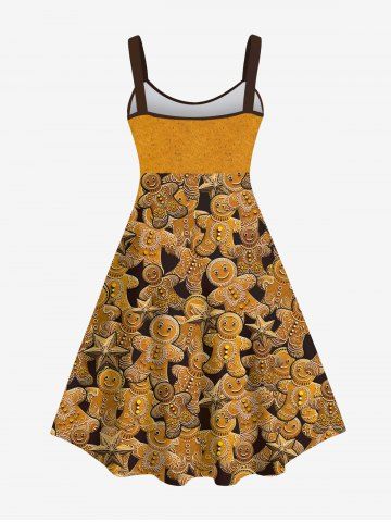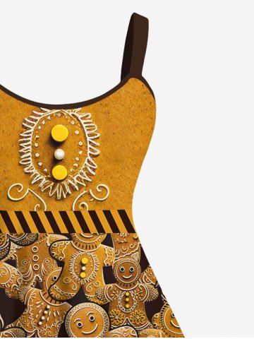 Plus Size Christmas Gingerbread Mirror Balls Print Tank Dress - Deep Yellow - 5x