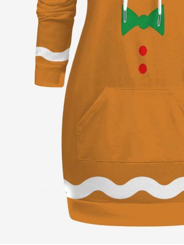 Dresses > Plus Size Christmas Gingerbread Print Pocket Drawstring Pullover Long Sleeves Hoodie