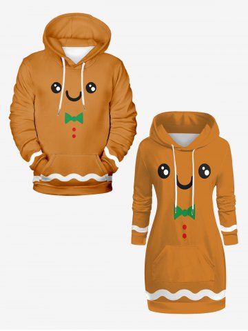 Dresses > Plus Size Christmas Gingerbread Print Pocket Drawstring Pullover Long Sleeves Hoodie