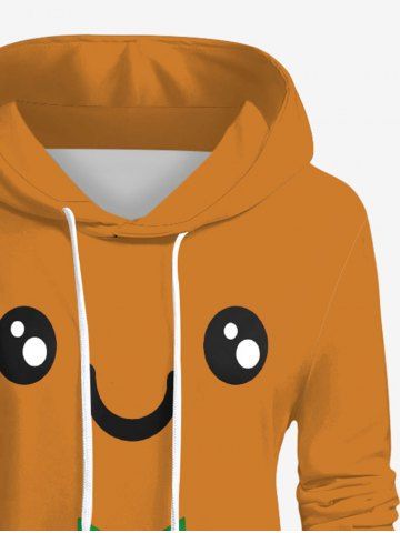 Plus Size Christmas Gingerbread Print Pocket Drawstring Pullover Long Sleeves Hoodie - Light Brown - 4xl