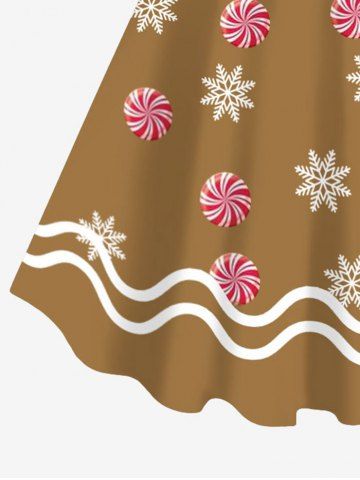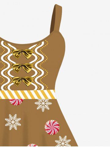 m*****e5Plus Size Christmas Gingerbread Snowflake Candy Ribbon Bowknot 3D Print Tank DressColor: COFFEE Size: 3XAbsolutely love the unique pattern on this dress! Loved creating a gingerbread themed outfit to go with it. Strecthy and roomy material.