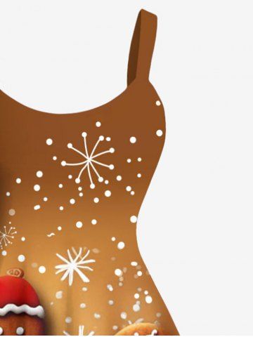 Plus Size Christmas Gingerbread Snowflake Print Tank Dress - Coffee - 6x