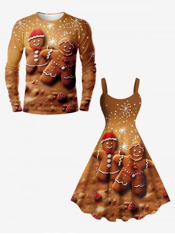 Dresses > Plus Size Christmas Gingerbread Snowflake Print Tank Dress