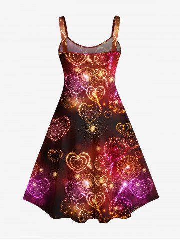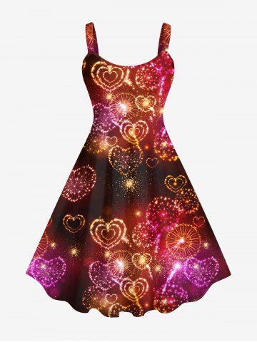 Plus Size Christmas Glitter Heart Fireworks Galaxy Print A Line Tank Dress - Multi-f - L