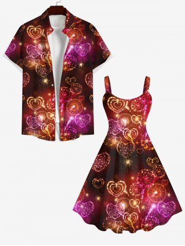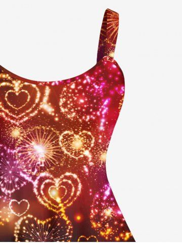 Dresses > Plus Size Christmas Glitter Heart Fireworks Galaxy Print A Line Tank Dress