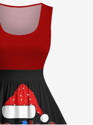 Plus Size Christmas Hat Ball Letters Stocking Print Vintage Swing A Line Dress - Black - 1x