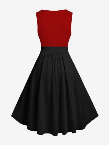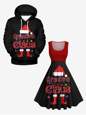 Plus Size Christmas Hat Ball Letters Stocking Print Vintage Swing A Line Dress - Black - 5x