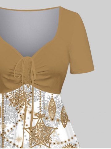 Plus Size Christmas Hat Cat Lucky Bag Star Snowflake Print Cinched Dress - Light Coffee - S