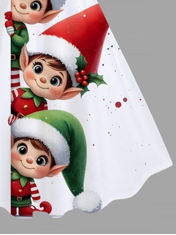 Plus Size Christmas Hat Elf Holly Print A Line Dress - White - Xs
