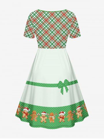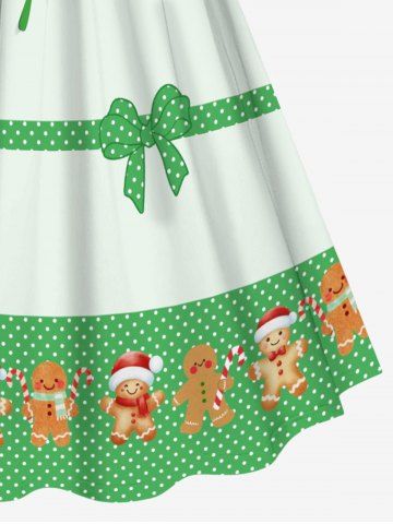 Plus Size Christmas Hat Gingerbread Polka Dots Ribbon Bowknot Print Cinched Dress - Green - Xs