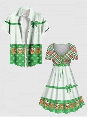 Plus Size Christmas Hat Gingerbread Polka Dots Ribbon Bowknot Print Cinched Dress - Green - 1x