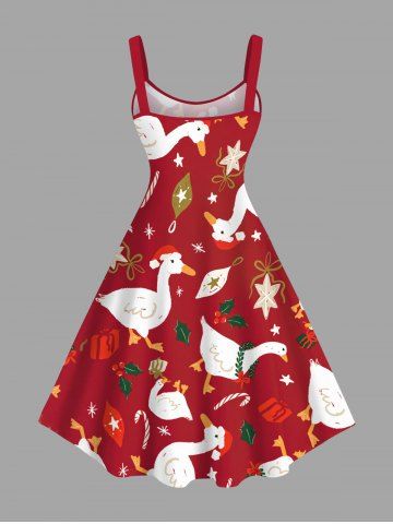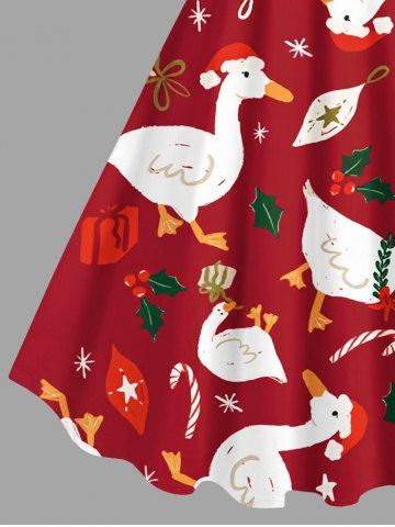 Plus Size Christmas Hat Goose Candy Gift Print A Line Dress - Red - S